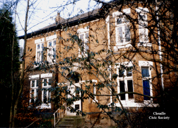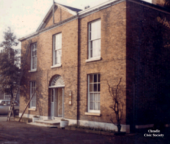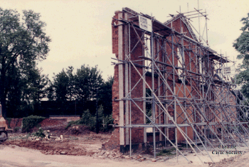 The front wall of the old Haw Bank building opposite Cheadle Green which was retained as part of a major building renovation