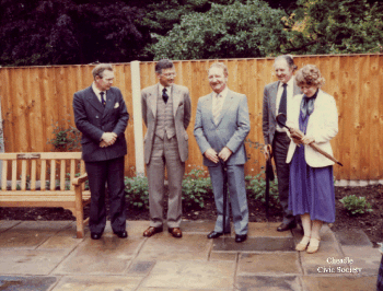 Local dignitaries gather to help inaugurate a new garden on Gatley Road close to the White Hart, created by the Cheadle Civic Society