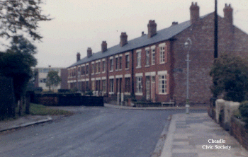 Old terraced houses on a road now demolished called Church Street, which is now the main car park behind the north side of High Street