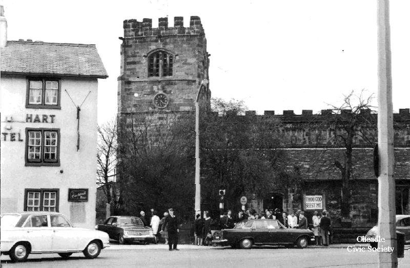 View of Wilmslow Road towards the White Hart Hotel and St Mary's church