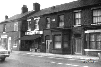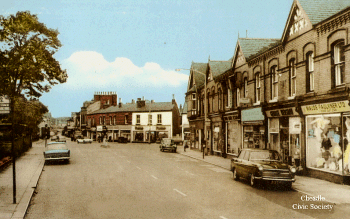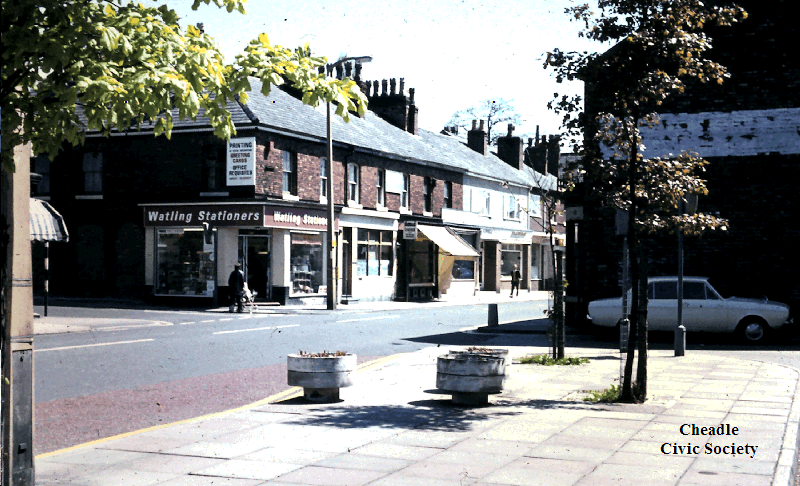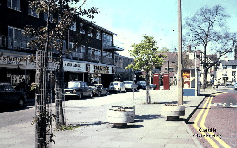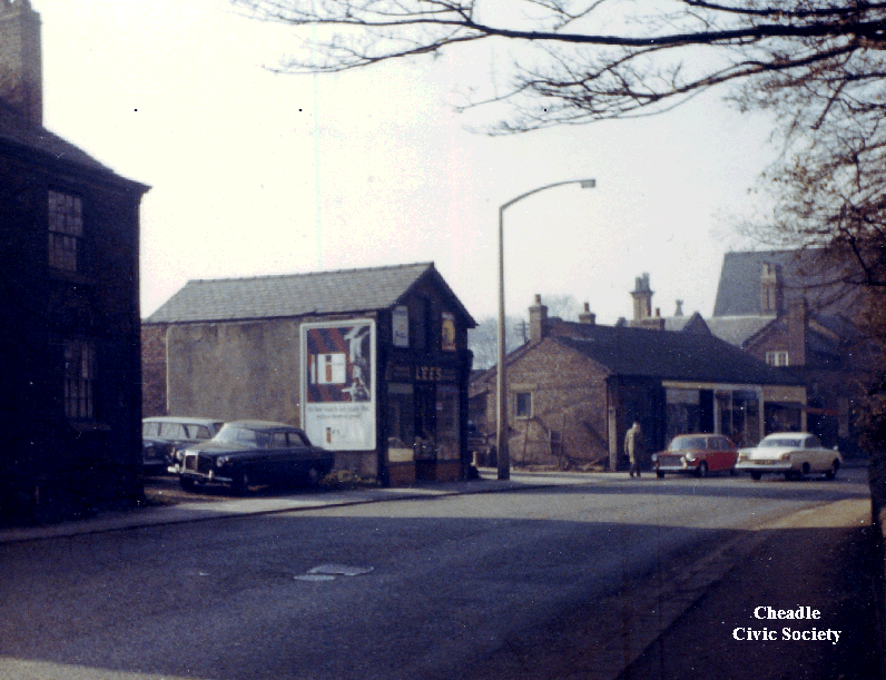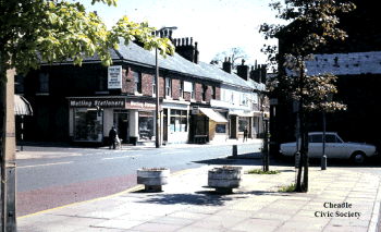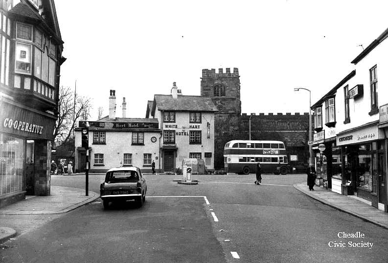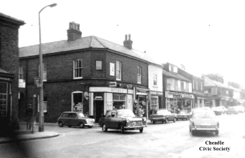 Wilmslow Road looking towards the White Hart Hotel with Cheadle Post Office on the left
