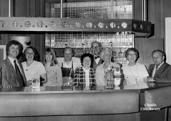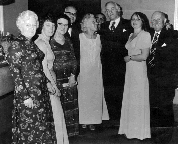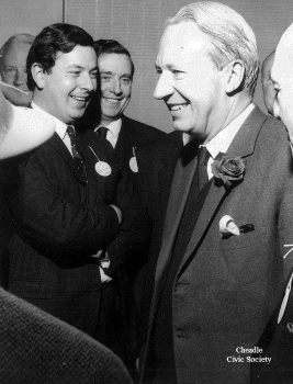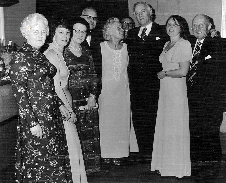 Former Prime Minister Edward Heath and his officials talk to supporters at the Cheadle Conservative Club