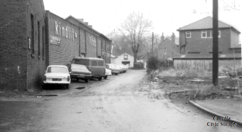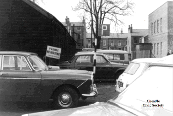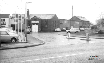 Cars parked outside the old Kindlit premises on Old Road, close to Stockport Road