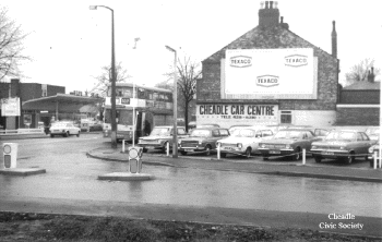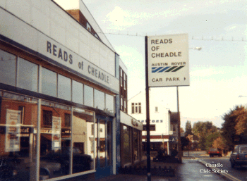 View of Reads of Cheadle car showroom and the south side of Gatley Road