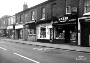 Marsh's print shop and neighbouring shops on the north side of High Street