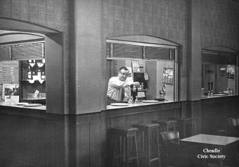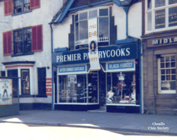 Bunting and flags outside Premier Pastrycooks on the south side of High Street to celebrate Queen Elizabeth's Silver Jubilee in 1977