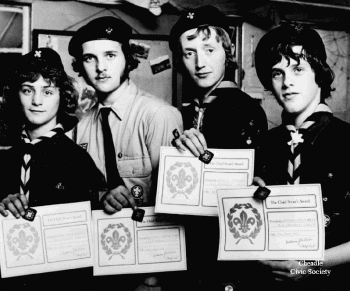 Members of the 2nd Cheadle Scouts receive "Chief Scouts" Awards in 1973