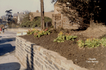 New flowers beds donated by the Cheadle Civic Society aside the north side of Gatley Road, close to the village