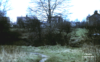 Empty fields and Cheadle brook believed to be at the back of Ashfield Road