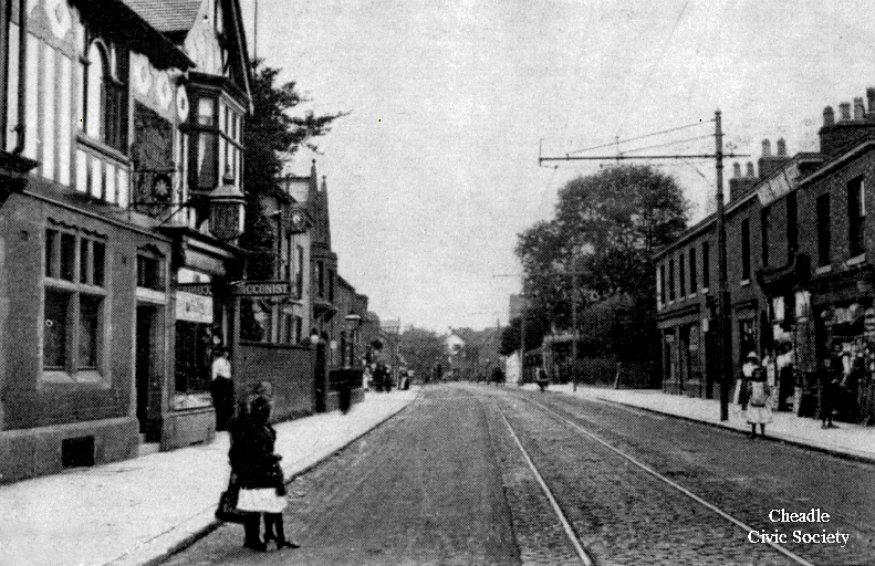 View of the junction of Stockport Road and Edgeley Road looking towards Cheadle