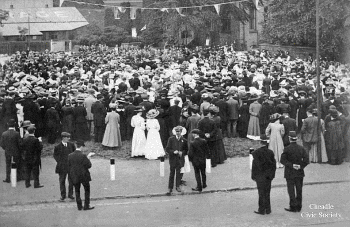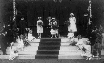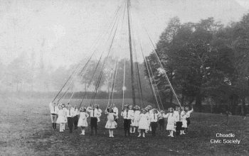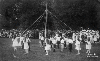 Children from Cheadle Primary School at the maypole at the 1914 Cheadle Carnival which took place in fields adjoining Gatley Road