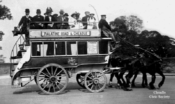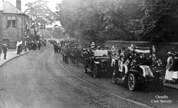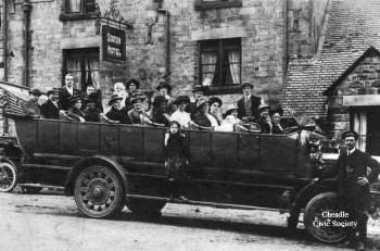 The enterprising Mr Booth, based behind St Mary's church, taking a party of local people in a trip away from Cheadle in his multi-seat charabanc he restored himself, probably somewhere between 1912 to 1914
