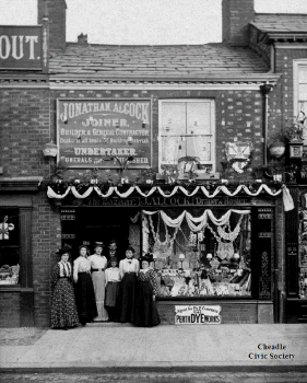 The Alcock Drapery and Hosiery shop on the south side of High Street win an award from the local tradesmen's association for the best local shop window display in 1914