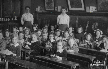 Group photograph of pupils from the recently opened Cheadle Primary School on Ashfield Road