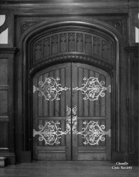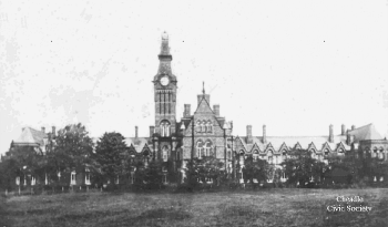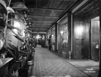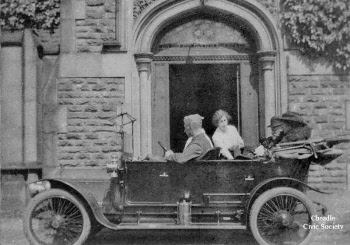 An early motor car drops off its passengers outside the front door of Bruntwood Hall around the end of the 1910s