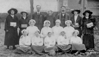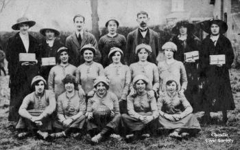 Day shift nurses from Barnes Convalescent Home pose for a team photograph in advance of a charity football match against the night shift nurses in 1916